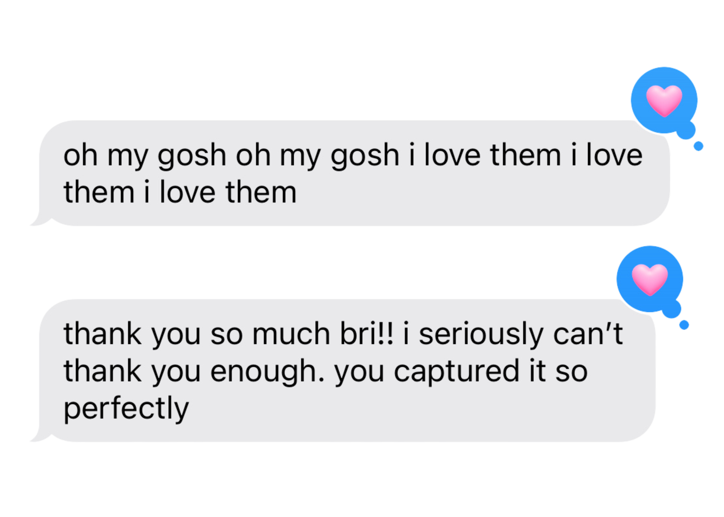 It’s truly an honor to be a part of your memories, and I can’t wait to connect and create something beautiful together. Thank you for being here, and I hope we can be friends! :)