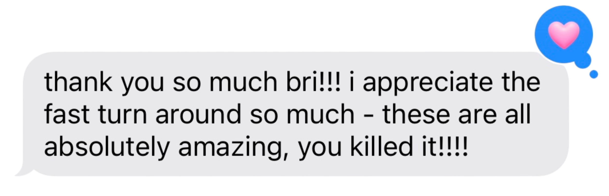 Welcome! I can’t wait to create something that looks like you. Your story, your people, your moments - I’m honored to capture it all.